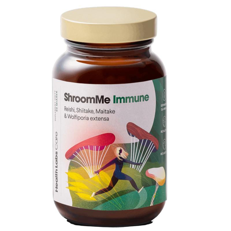 Suplement diety ShroomMe Immune marki Health Labs to produkt zawierający cztery adaptogeny, które wspierają odporność organizmu. Adaptogeny pomagają organizmowi przystosować się do różnych stresorów i zwiększą jego zdolność do optymalnego radzenia sobie z nimi. Składniki aktywnego dodatku do ekstraktów z czterech grzybów: Reishi, Shiitake, Maitake i Wolfiporia.