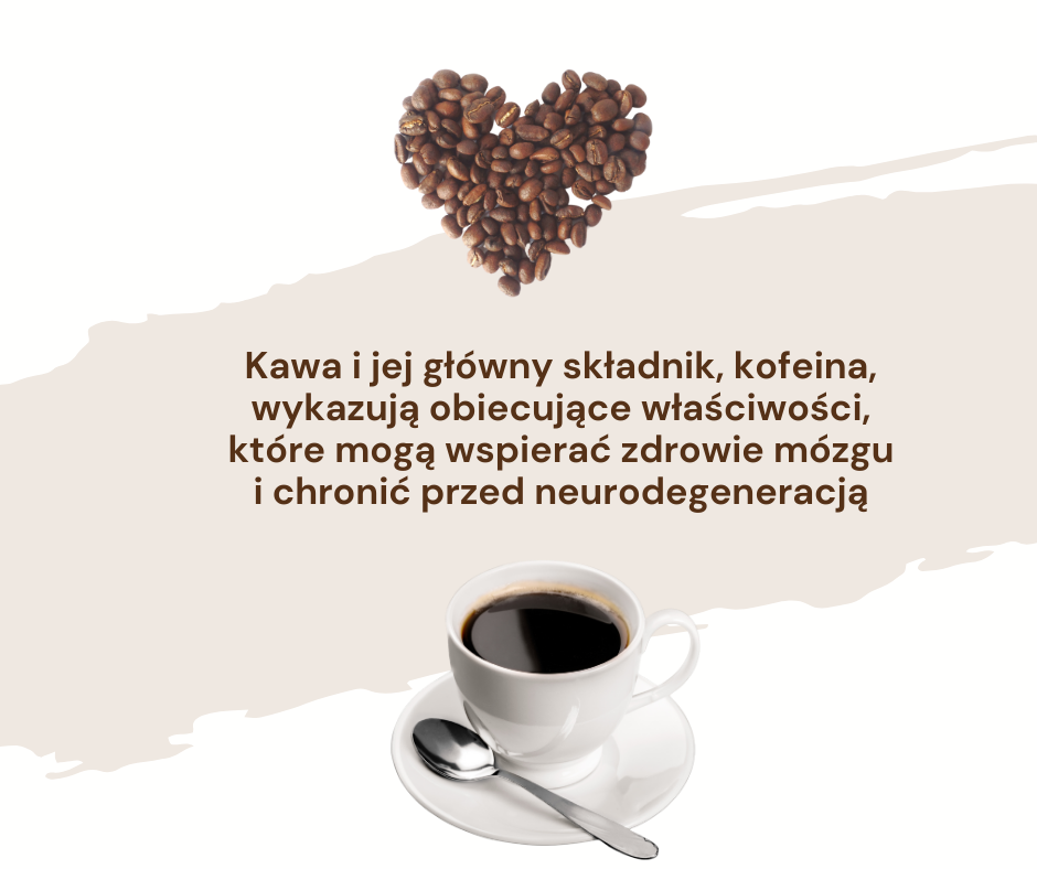 Kawa jest bogata w przeciwutleniacze, takie jak kwas chlorogenowy, które pomagają chronić komórki mózgowe przed stresem oksydacyjnym i uszkodzeniami wywołanymi przez wolne rodniki. Kawa ma właściwości przeciwzapalne, które mogą pomagać w redukcji stanów zapalnych w mózgu. Przewlekłe zapalenie jest uważane za jeden z mechanizmów prowadzących do rozwoju choroby Alzheimera. Według badań spożywanie kawy w wieku średnim prawdopodobnie zmniejsza ryzyko demencji w wieku starszym. Osoby, które piły 3-4 filiżanek dziennie, były mniej narażone na demencję niż osoby, które wypijały dziennie 2 filiżanki lub wcale.