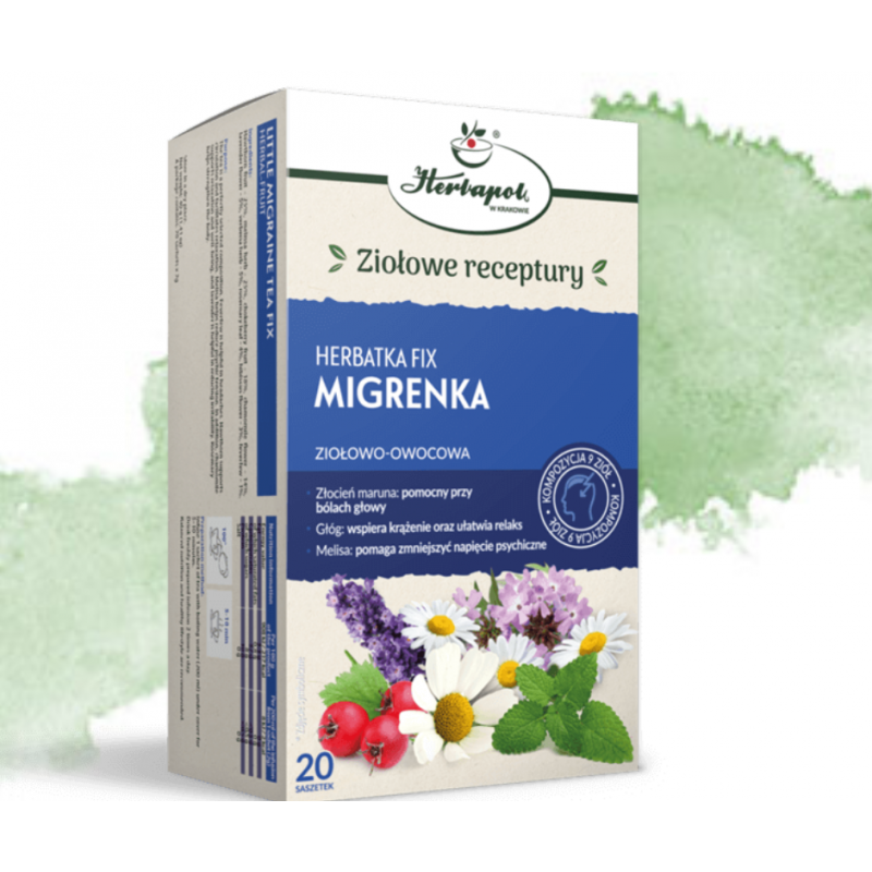 Herbatka MIGRENKA firmy Herbapol to idealna mieszanka ziół w saszetkach, stworzona specjalnie dla osób borykających się z bólami głowy i napięciem psychicznym.