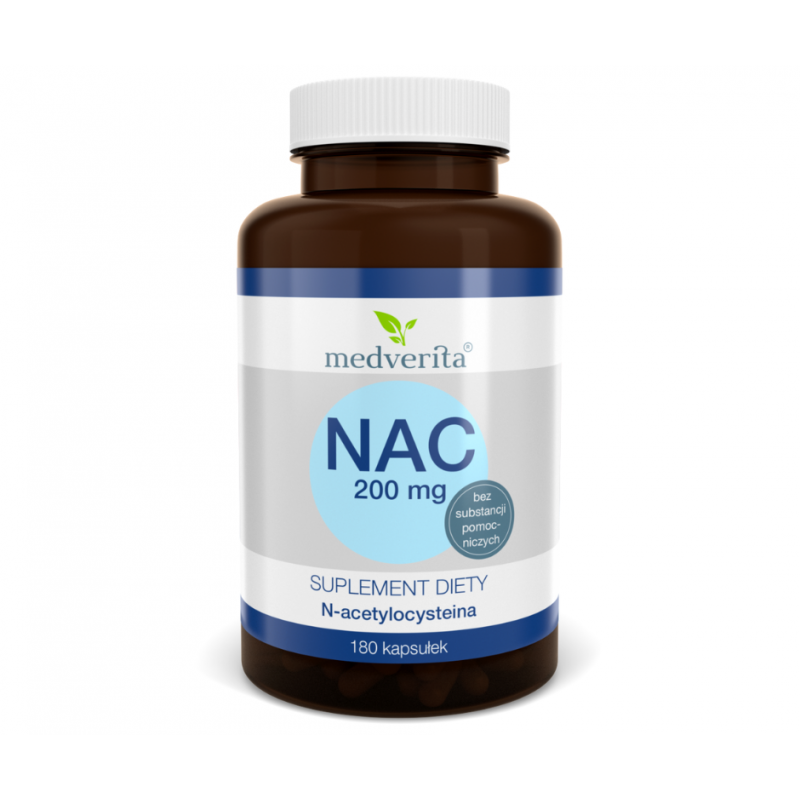 Medverita NAC to suplement diety zawierający N-acetylocysteinę, organiczny związek chemiczny będący stabilną formą L-cysteiny. L-cysteina jest endogennym aminokwasem, który pełni kluczową rolę jako prekursor glutationu – jednego z najważniejszych przeciwutleniaczy w organizmie.