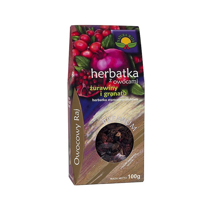 Herbatka z owocami żurawiny i granatu Natura Wita to wyjątkowa kompozycja owocowo-ziołowa, stworzona z myślą o miłośnikach głębokich, owocowych smaków. Wyselekcjonowane składniki tworzą harmonijny napar o intensywnej barwie i bogatym profilu aromatycznym.