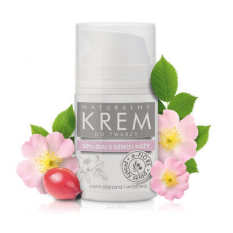 Naturalny Krem do twarzy z Dziką Różą Piżmową 20% E-Fiore
