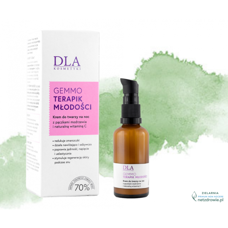 Krem do twarzy na noc zawierający bogactwo składników. Zawiera pączki z modrzewia (naturalny , bardzo skuteczny antyoksydant) oraz napary z kwiatu malwy (nawilża i chroni skórę przed działaniem wolnych rodników), owoców dzikiej róży, koniczyny czerwonej i lukrecji (nawilża i wybiela). Ponadto kosmetyk wzbogacono o ceramidy, witaminy A,C,E,F i nienasycone kwasy tłuszczowe Omega-3, Omega-6, Omega-9 oraz mirrę (regeneruje skórę) i oejek z geranium.