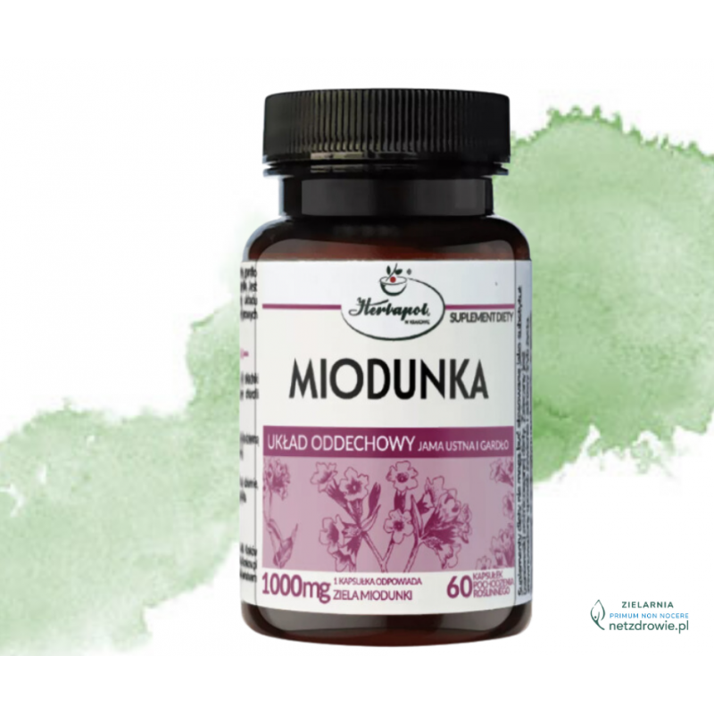 Suplement diety zawierający wyciąg z miodunki (zwanej też płucnikiem).