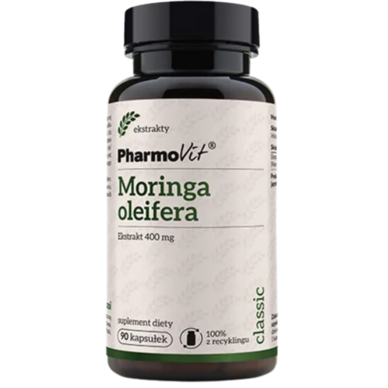 Moringa oleifera 400mg marki PharmoVit to suplement diety w postaci kapsułek, który zawiera sproszkowane liście moringa oleifera. Produkt skupia się na wykorzystaniu sproszkowanych liści moringa oleifera.