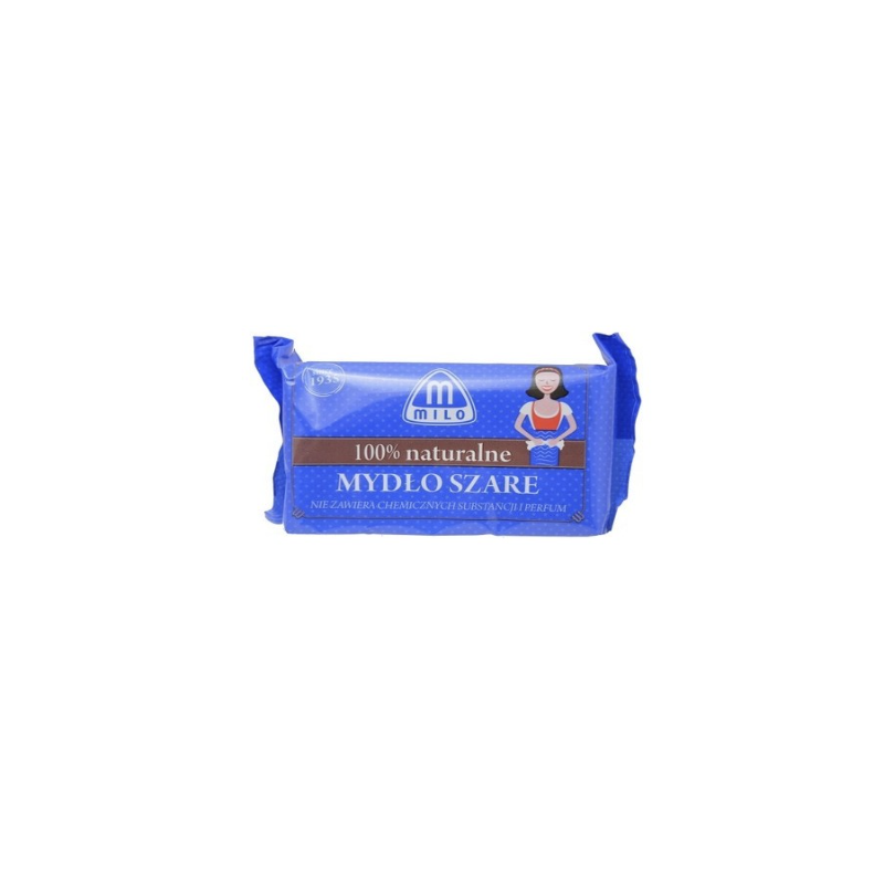 Milo mydło szare100% czysty naturalny produkt bez chemicznych substancji i zapachu. Nadaje się również do prania ręcznego i w pralkach wirnikowych, chroni włókna i kolory, nie drażni skóry, skutecznie usuwa plamy i brud, ulega biodegradacji.