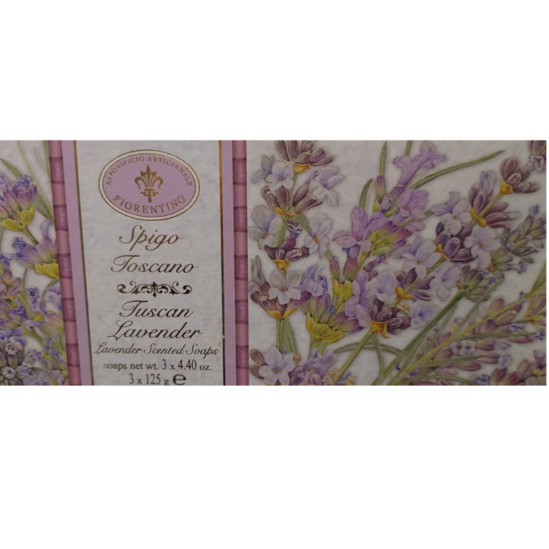 Zestaw naturalnych mydeł 3x125 g LAWENDA marki SAPONIFICIO ARTIGIANALE FIORENTINO to wyjątkowy produkt, który przynosi luksus pielęgnacji i aromatyczną podróż do malowniczych pól lawendy w Toskanii. Ten elegancki zestaw zawiera trzy rzeźbione mydła, które nie tylko doskonale dbają o Twoją skórę, ale także oferują niezwykły aromat lawendy.