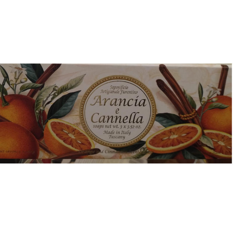 Naturalne mydło Saponificio Artigianale Fiorentino o eleganckim, zmysłowym zapachu pomarańczy z cynamonem ma doskonałe właściwości pielęgnacyjne i jest wyjątkowo przyjemne w użyciu. Delikatnie myje i oczyszcza skórę. Regularne używanie mydła sprawia, że skóra jest niezwykle gładka, dobrze odżywiona, przyjemnie sprężysta i nawilżona. Receptura naturalnych mydeł włoskich oparta jest na najwyższej jakości naturalnych olejach roślinnych, a podstawowym ekstraktem jest olej kokosowy, który nawilża, odżywia i regeneruje skórę oraz łagodzi podrażnienia.