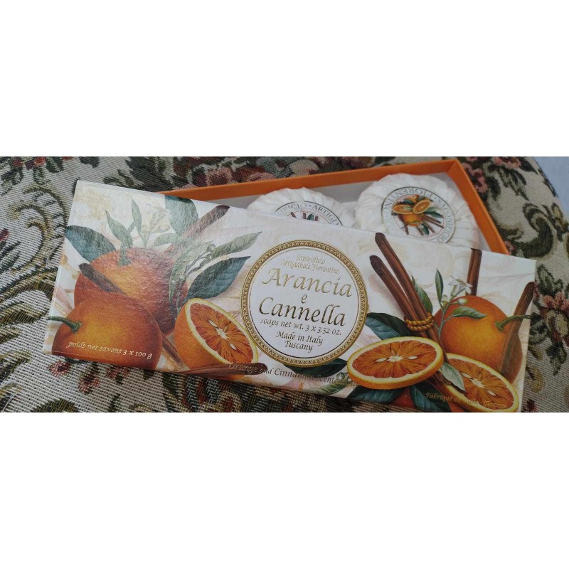 MYDŁO POMARAŃCZA 3x125g. Zestaw ręcznie robionych włoskich mydeł Saponificio Artigianale Fiorentino