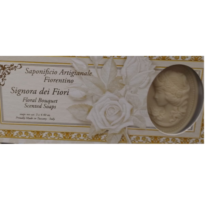 Zestaw (3x 125g) naturalnych mydeł w kształcie Damy Kameliowej marki Saponificio Artigianale Fiorentino to wyjątkowy produkt, który łączy w sobie naturalne składniki, elegancki design oraz piękny, zmysłowy zapach. To nie tylko mydło, to prawdziwa przyjemność pielęgnacyjna dla skóry i zmysłów.