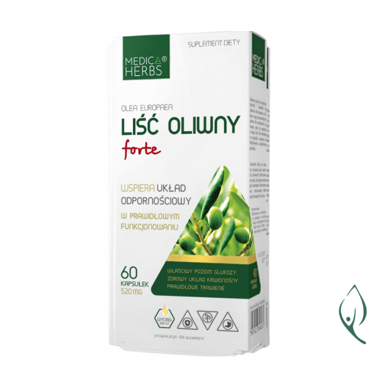 Liść Oliwny Forte marki Medica Herbs to suplement diety standaryzowany na 40% oleuropeiny
