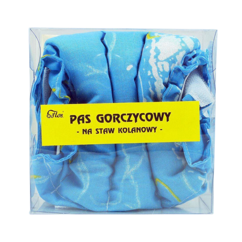Pas gorczycowy na kolano marki Flos to wyrób medyczny przeznaczony do łagodzenia różnego rodzaju bóli, w szczególności mięśniowych i reumatycznych. Produkt jest oparty na naturalnych składnikach i cechuje się prostym sposobem użycia.