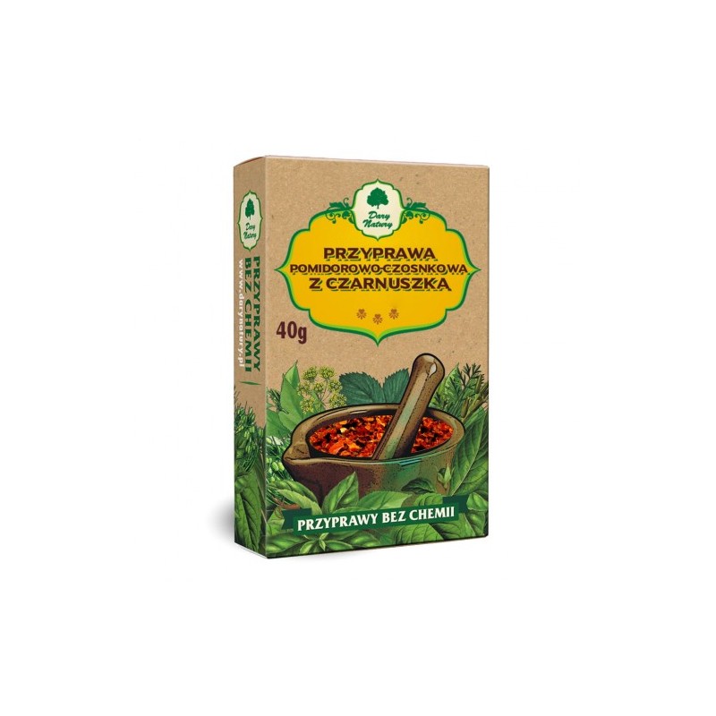 pomidory 80%, czarnuszka 15%, czosnek niedźwiedzi 5%