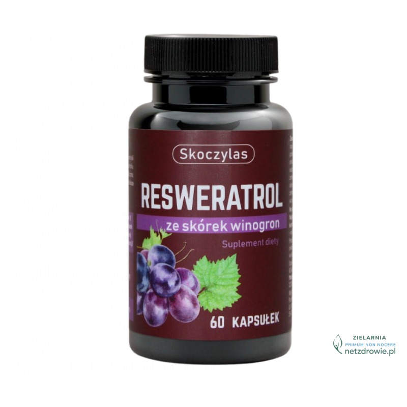 RESWERATROL marki Skoczylas to suplement diety zawierający resweratrol pozyskiwany ze skórek winogron, który wspiera zdrowie układu krążenia, serca oraz naczyń krwionośnych. Dzięki zawartości ekstraktu z Vitis vinifera L. produkt wspomaga krążenie żylne, pomaga w utrzymaniu prawidłowego ciśnienia krwi oraz chroni komórki przed szkodliwym działaniem wolnych rodników.