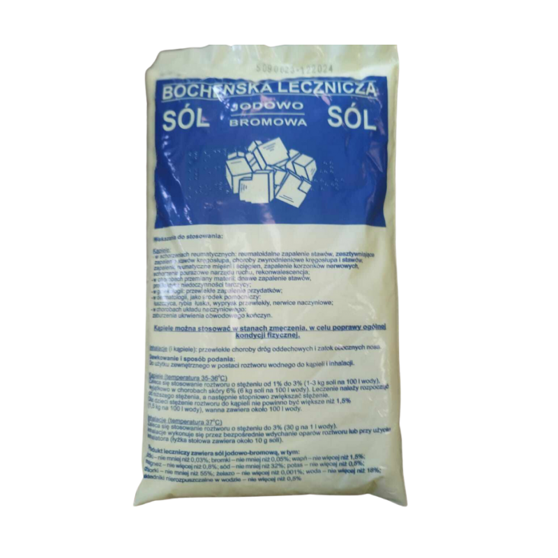 Zastosowanie: Kąpiele z użyciem tej soli są zalecane w procesie rehabilitacji ruchowej oraz mogą wspomagać leczenie schorzeń reumatycznych. Ponadto, jest również stosowana przy inhalacjach górnych dróg oddechowych.