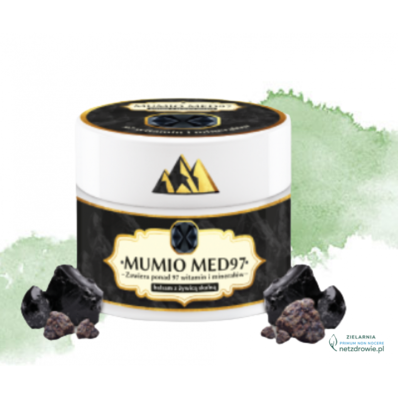 Krem Mumio Med97 firmy Asepta to preparat do stosowania na skórę, polecany szczególnie do regeneracji pleców, bioder, kolan oraz dłoni. Jego głównym składnikiem jest mumio zawierające kwas fulwowy, który ma właściwości przeciwutleniające i przeciwzapalne, co pomaga w regeneracji i rewitalizacji skóry.
