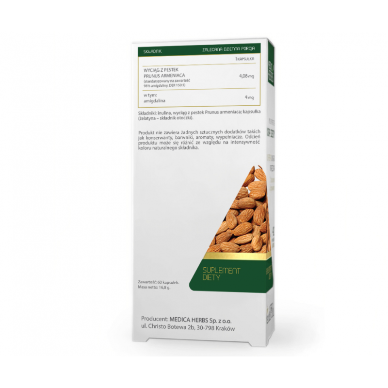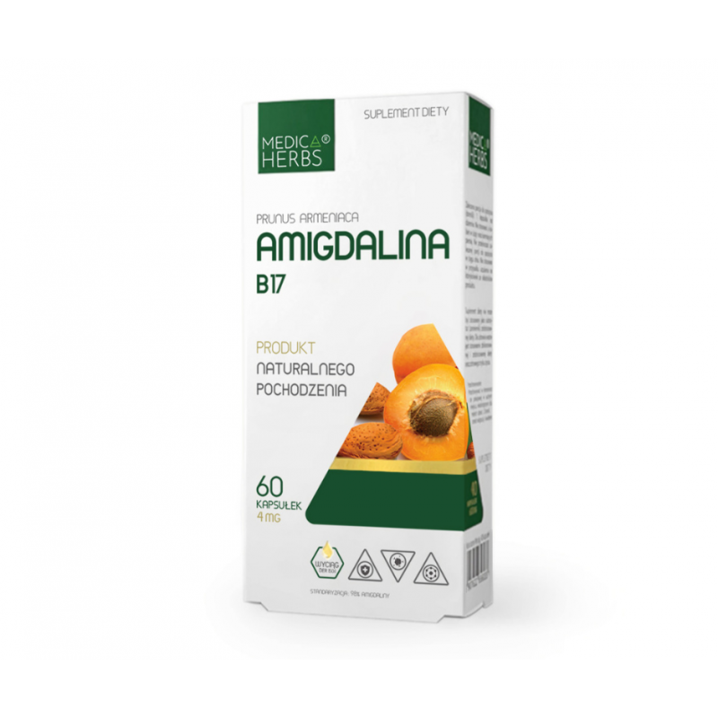Amigdalina B17 od Medica Herbs to suplement diety, który zawiera 98% czystej amigdaliny, pozyskiwanej z pestek Prunus armeniaca (moreli). Amigdalina, znana również jako witamina B17, jest naturalnym związkiem występującym w różnych roślinach, szczególnie w pestkach owoców. Produkt wspiera organizm, dostarczając wyjątkowo skoncentrowaną dawkę tego składnika.