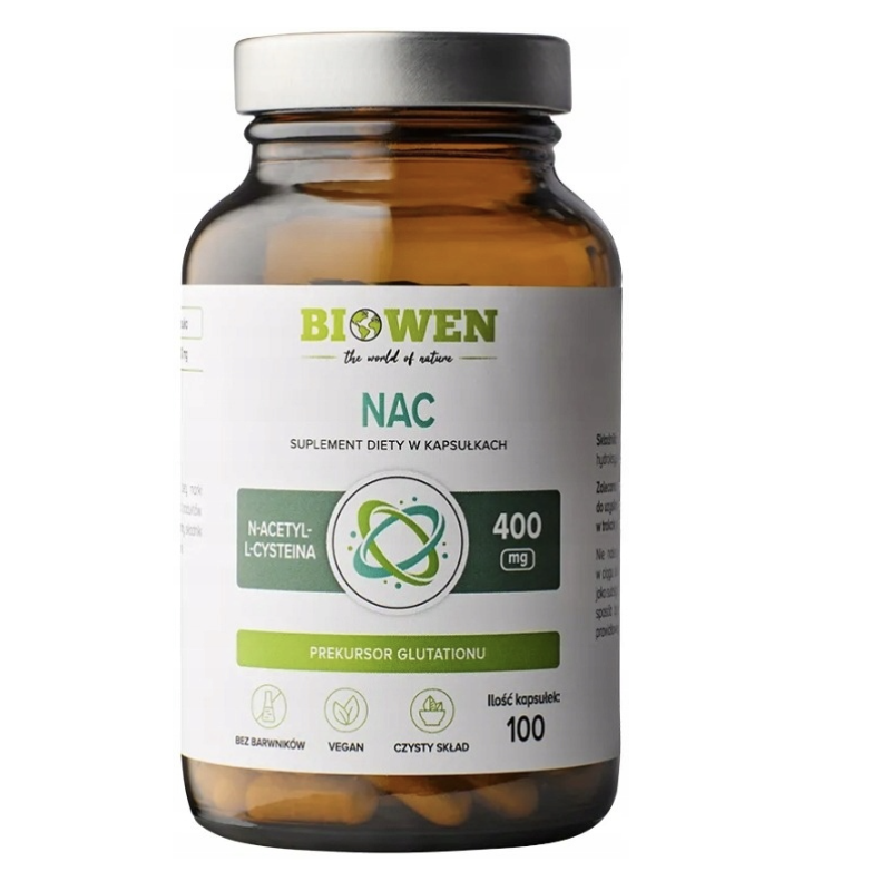NAC Biowen to suplement diety w kapsułkach, zawierający N-acetylo-L-cysteinę (NAC) w dawce 600 mg na porcję. Preparat cechuje się prostym składem, bez zbędnych dodatków i konserwantów.