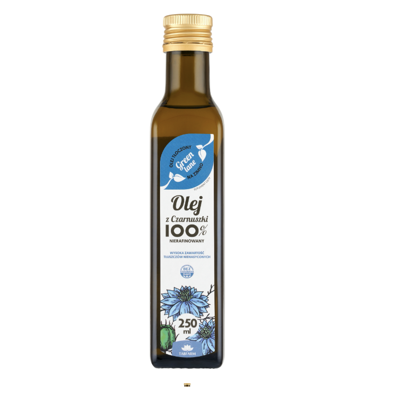 Olej z czarnuszki tłoczony na zimno, nieekstrahowany chemicznie, nierafinowany