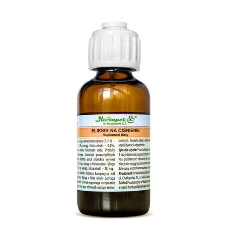 Eliksir NA CIŚNIENIE marki Herbapol to suplement diety skomponowany z naturalnych wyciągów roślinnych, który wspomaga zdrowie układu krążenia i pomaga w utrzymaniu prawidłowego ciśnienia krwi. Produkt zawiera starannie dobrane składniki, które wspierają codzienną dietę, dbając o zdrowie serca i naczyń krwionośnych.