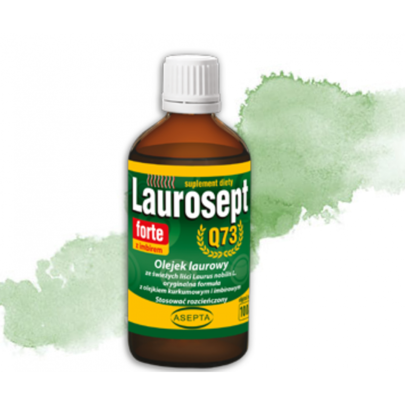 Suplement diety Laurosept Forte to połączenie oliwy z oliwek, olejku z liści wawrzynu szlachetnego (Laurus nobilis L.), olejku z kłącza kurkumy (Curcuma longa) i olejku z imbiru lekarskiego.