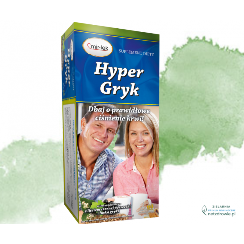 Hyper-Gryk Mir-Lek to naturalna mieszanka ziołowa, która może pomóc w utrzymaniu stabilnego ciśnienia krwi. Zawiera mn. innymi liście czarnej porzeczki i łuski gryki. Czarna porzeczka jest bogata w składniki odżywcze i przeciwutleniacze, które pomagają stabilizować ciśnienie krwi. Liście czarnej porzeczki również zawierają flawonoidy, które pomagają wzmocnić układ sercowo-naczyniowy. W skład mieszanki wchodzą również inne zioła i składniki, takie jak aronia, głóg, żurawina, hibiskus, serdecznik i fiołek trójbarwny, które mają pozytywny wpływ na organizm i wspomagają zdrowie serca i naczyń krwionośnych. Głóg ma właściwości kardioprotekcyjne i pomaga wzmocnić krążenie krwi. Serdecznik może pomóc utrzymać normalne ciśnienie krwi, a hibiskus zawiera antocyjany, które pomagają obniżyć ciśnienie krwi. Łuska gryki, która jest również obecna w mieszance, może przyczynić się do poprawy stanu zdrowia i wzmocnienia organizmu.