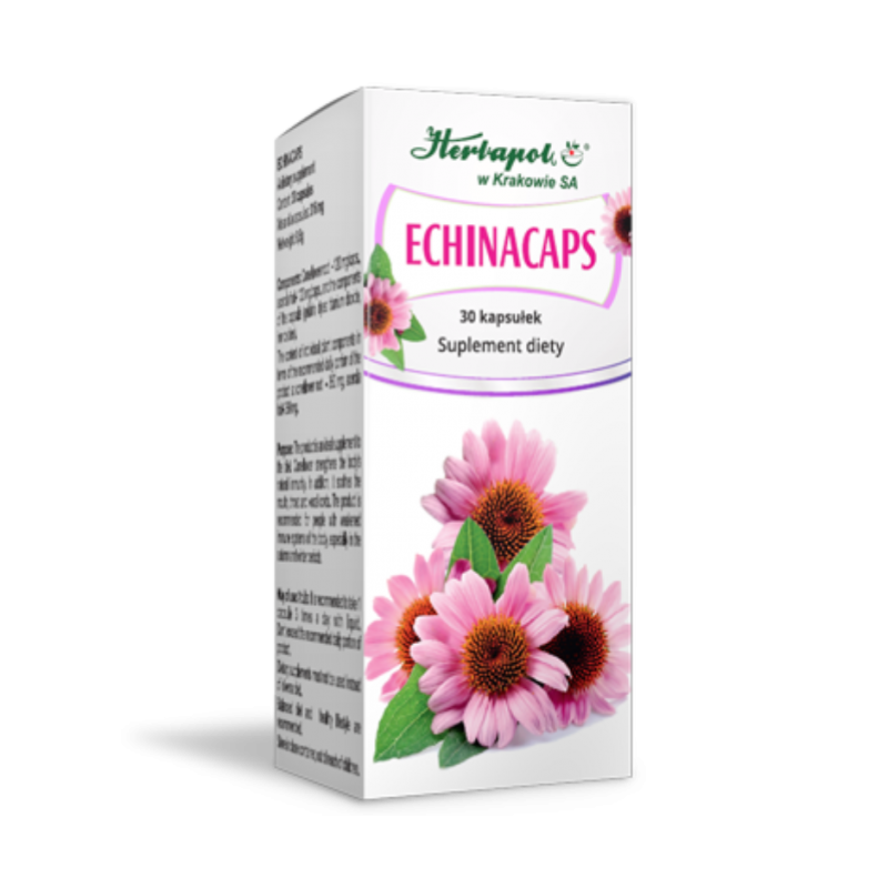 ECHINACAPS marki Herbapol to suplement diety, który został stworzony jako wsparcie dla organizmu, zwłaszcza w okresach, gdy naturalna odporność może być obniżona, takich jak jesień i zima.
