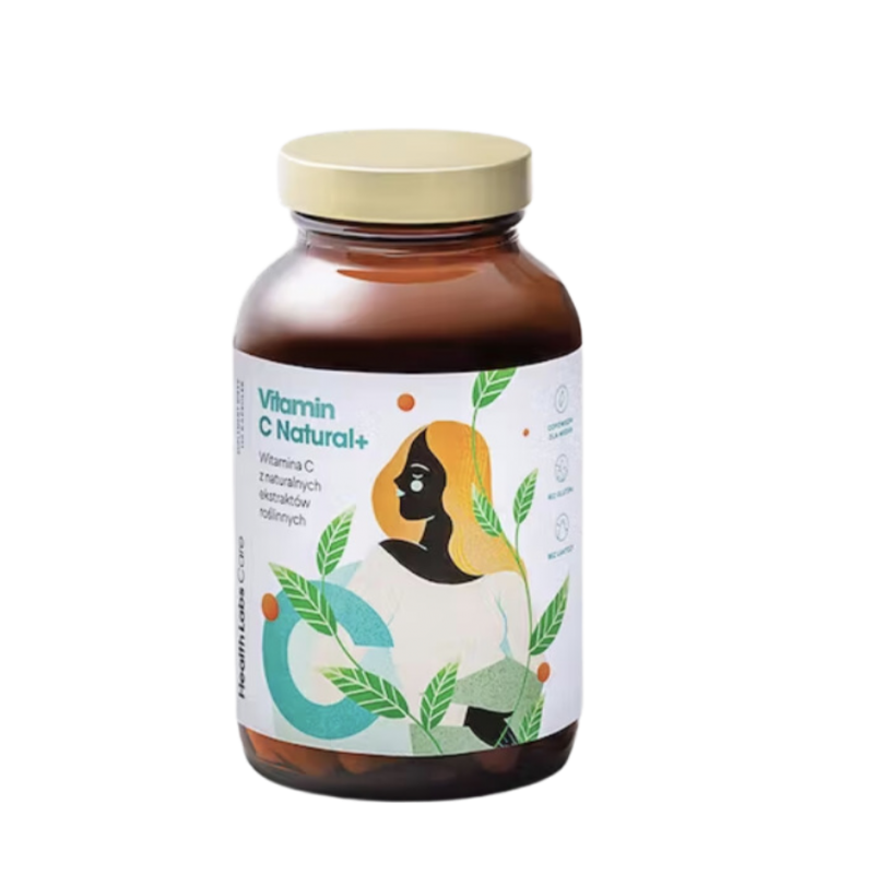 Suplement diety Vitamin C Natural+ marki Health Labs zawiera ekstrakty z owoców camu camu, aceroli, gorzkiej pomarańczy oraz perełkowca japońskiego, które są bogatym źródłem witaminy C oraz rutyny i hesperydyny wspierające układ odpornościowy.