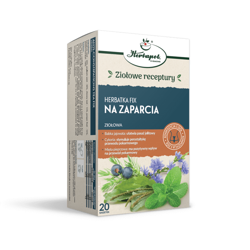 Kompozycja 5 ziół: Nasiona babki jajowatej, nasiona babki płesznik, korzeń cykorii, owoc jałowc, liść mięty pieprzowej