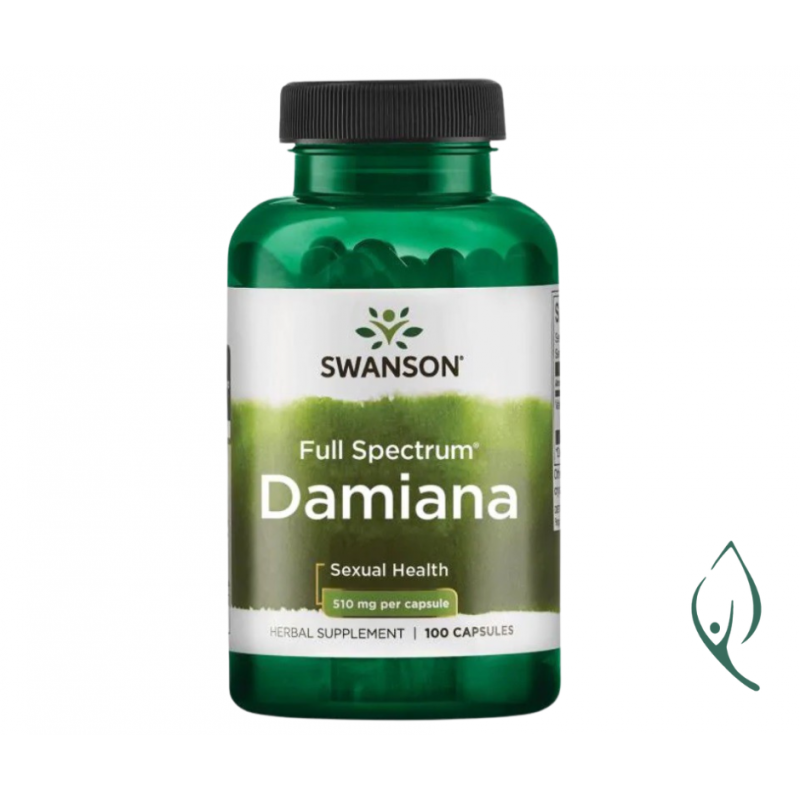 Produkt Swanson Damiana 510 mg to suplement diety zawierający liście Turnera diffusa (Damiana) w ilości 510 mg na kapsułkę. Tej roślinie przypisuje się prozdrowotne właściwości, szczególnie wpływ na libido i sprawność seksualną. Damiana jest również stosowana w celu wsparcia kondycji psychicznej w warunkach stresu i napięcia nerwowego, a także może przyczyniać się do utrzymania odpowiedniego poziomu glukozy we krwi.