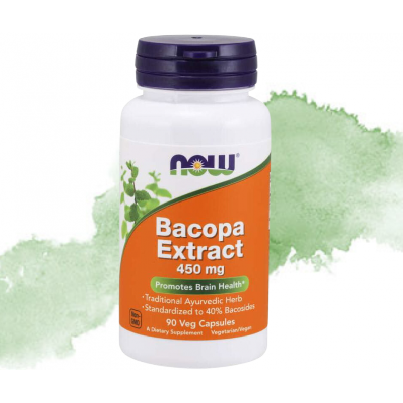 Suplement diety firmy NOW. Zawiera ekstrakt z bakopy drobnolistnej (brahmi).