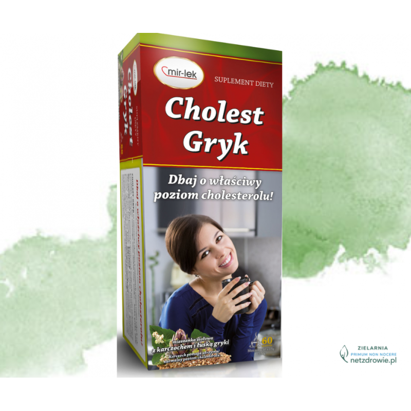 Herbatka Cholest-Gryk firmy Mir-Lek to mieszanka ziołowa, która zawiera wiele składników, mających na celu utrzymanie dobrego stanu zdrowia układu sercowo-naczyniowego i wspomóc utrzymanie prawidłowego poziomu cholesterolu.