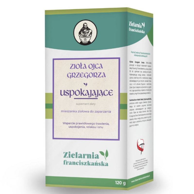 Zioła Ojca Grzegorza - Uspokajające to suplement diety stworzony dla osób szukających naturalnego wsparcia w stanach stresu i napięcia nerwowego. Produkt pomaga w relaksacji, wspomaga zdrowy sen oraz poprawia procesy trawienne. Regularne stosowanie mieszanki może wspierać odprężenie organizmu i przywrócenie równowagi emocjonalnej, jednocześnie poprawiając komfort trawienia.