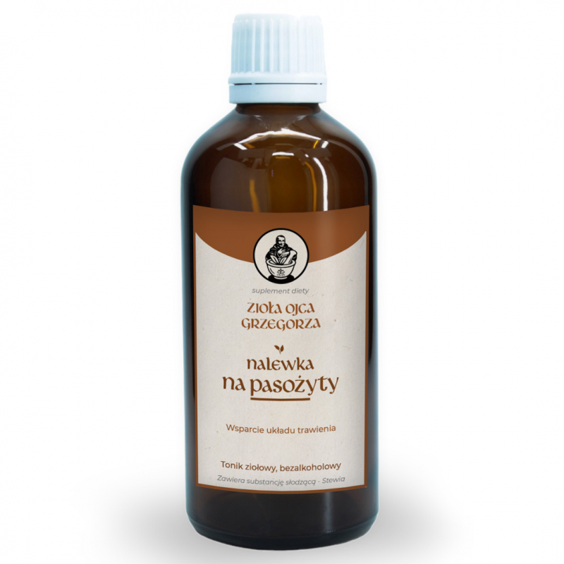 Zioła Ojca Grzegorza - Nalewka Na Pasożyty to naturalny, bezalkoholowy tonik ziołowy wspomagający układ trawienny i wzmacniający odporność organizmu. Stworzony na bazie starannie wyselekcjonowanych składników roślinnych, wspiera prawidłowe funkcjonowanie organizmu i tworzy niesprzyjające warunki dla pasożytów oraz niepożądanych mikroorganizmów.