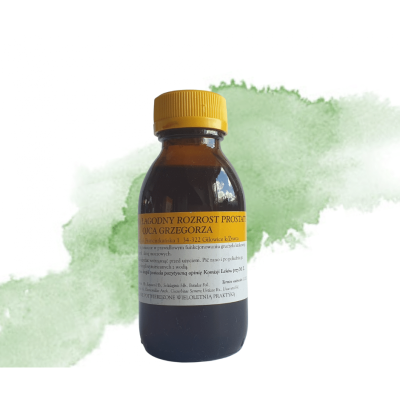 Nalewka Męska (Prostata) z serii Zioła Ojca Grzegorza to bezalkoholowy tonik ziołowy, który wspiera prawidłowe funkcjonowanie układu moczowo-płciowego, w tym gruczołu prostaty. Jest to suplement diety o objętości 210 ml, który zawiera starannie dobrane składniki roślinne, które działają wspomagająco na zdrowie mężczyzn, szczególnie w zakresie funkcji prostaty.