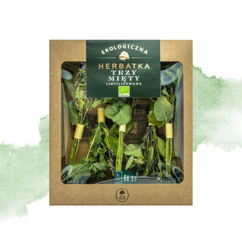 Bardzo efektowanie wyglądająca herbata- cudownie nadaje się na prezent. W jej skład wchodzi 5 ręcznie robionych ekologicznych bukiecików z liofilizowanych ziół- trzech aromatycznych gatunków mięty: szarej, dzikiej i pieprzowej. Zioła w mieszance są liofilizowane (czyli pozbawione wody w specjalny sposób) dzięki czemu zachowują naturalny kształt, barwę, aromat i nie tracą witamin oraz olejków eterycznych. Herbatę zaparza się jak każdą inną- zalewamy wrzątkiem i zostawiamy na kwadrans.