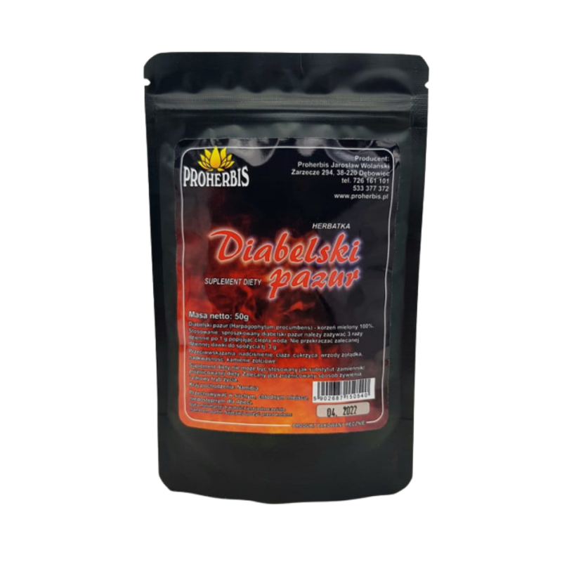 Diabelski Pazur, znany również jako Czarci Pazur (Harpagophytum procumbens), to roślina pochodząca z południa Afryki. Już od wieków tamtejsze społeczności wykorzystywały korzeń tej rośliny do leczenia różnych dolegliwości reumatycznych, a także problemów żołądkowo-jelitowych. Diabelski Pazur zawiera wiele cennych składników, takich jak harpagid, harpagosid, procumbid, fitosterole, trójperten, flawonoidy, nienasycone kwasy tłuszczowe, kwas cynamonowy i chlorogenowy.